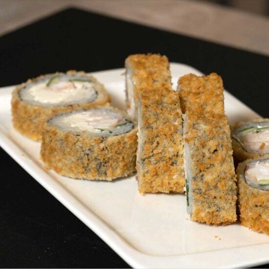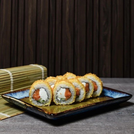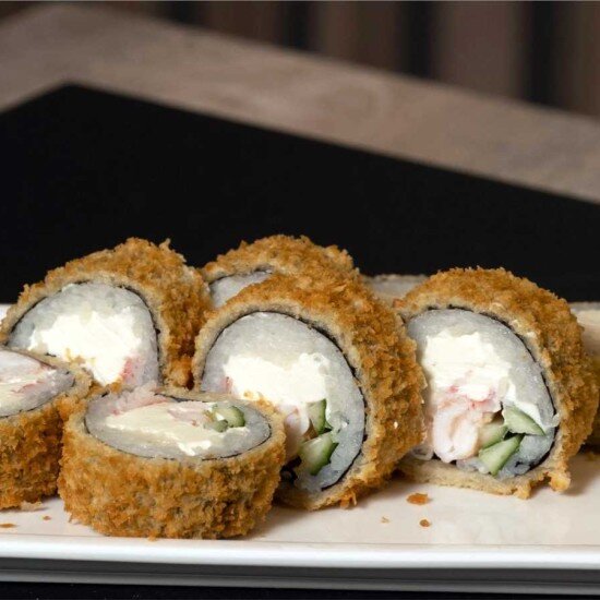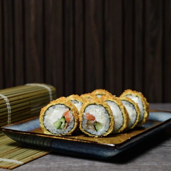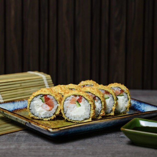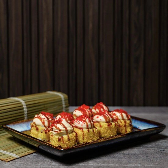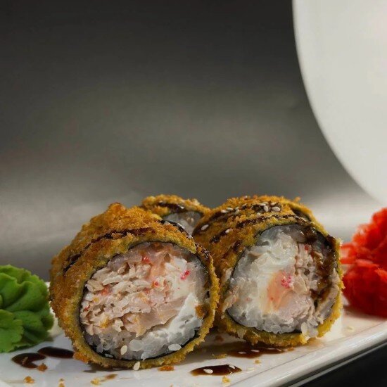 Рис, нори, сыр, огурец, угорь, соус унаги, спайси соус, кунжут
